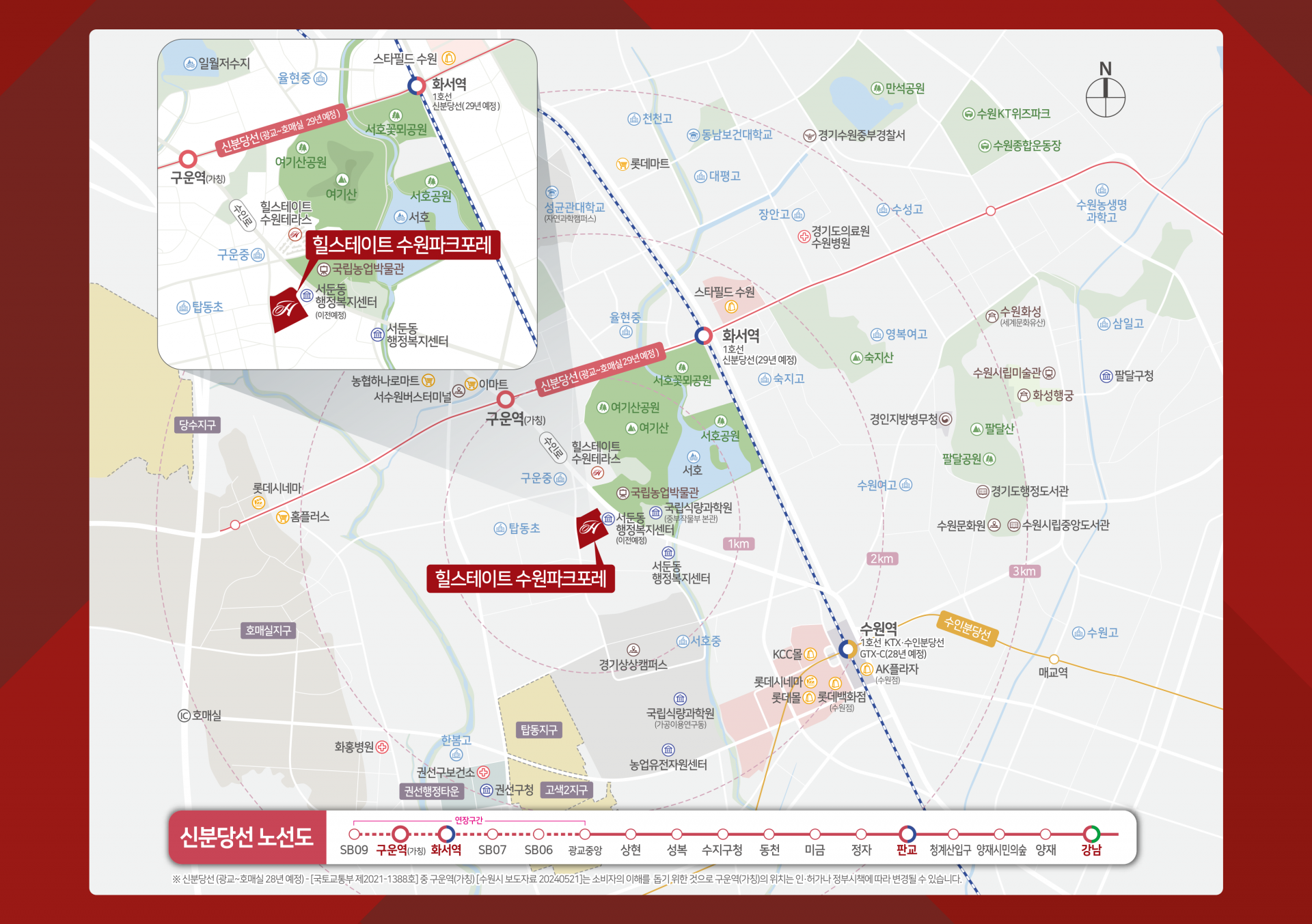 ※ 신분당선 (광교~호매실 28년 예정) - [국토교통부 제2021-1388호] 중 구운역(가칭) [수원시 보도자료 20240521]는 소비자의 이해를 돕기 위한 것으로 구운역(가칭)의 위치는 인·허가나 정부시책에 따라 변경될 수 있습니다.